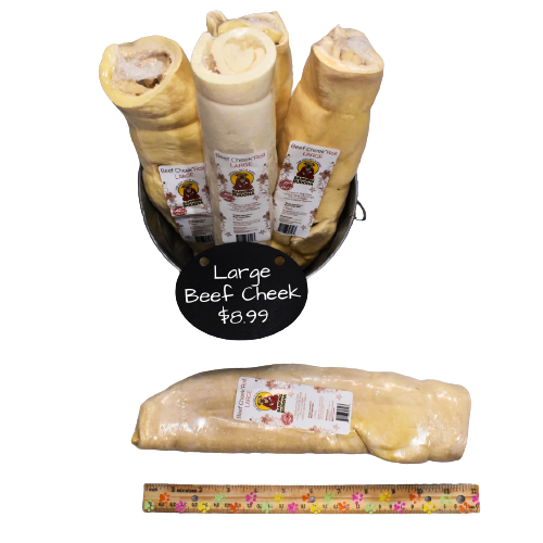 We have bought beef cheeks for our dog from pet stores in the past, but the one we bought from A Place For Paws was by far his favorite. He carried it around with him for days while he gradually chewed it to half its size. He still has some left and chooses this one over the others when he wants to have a little after dinner snack.